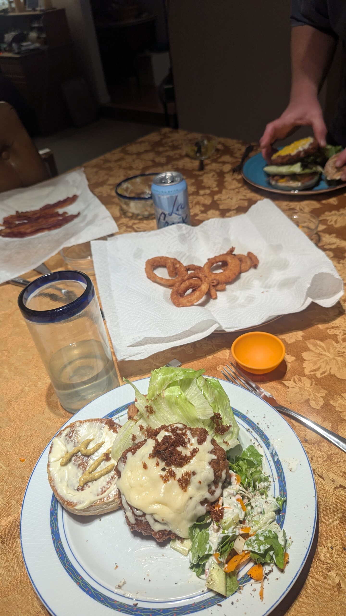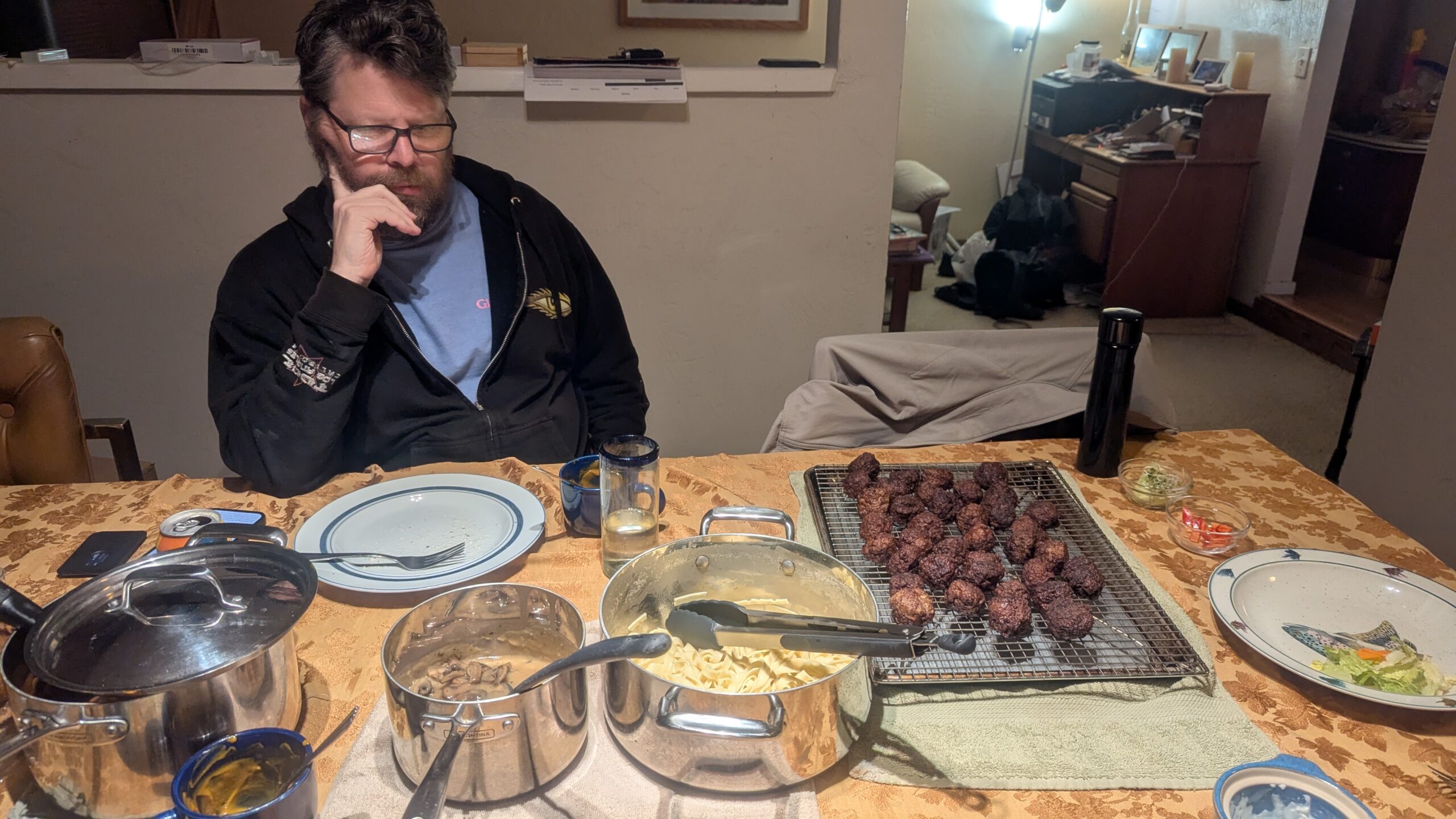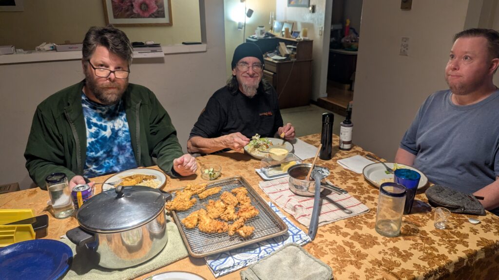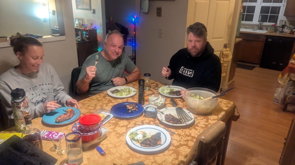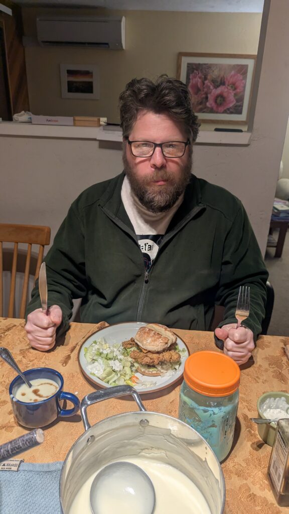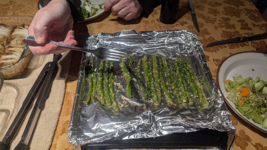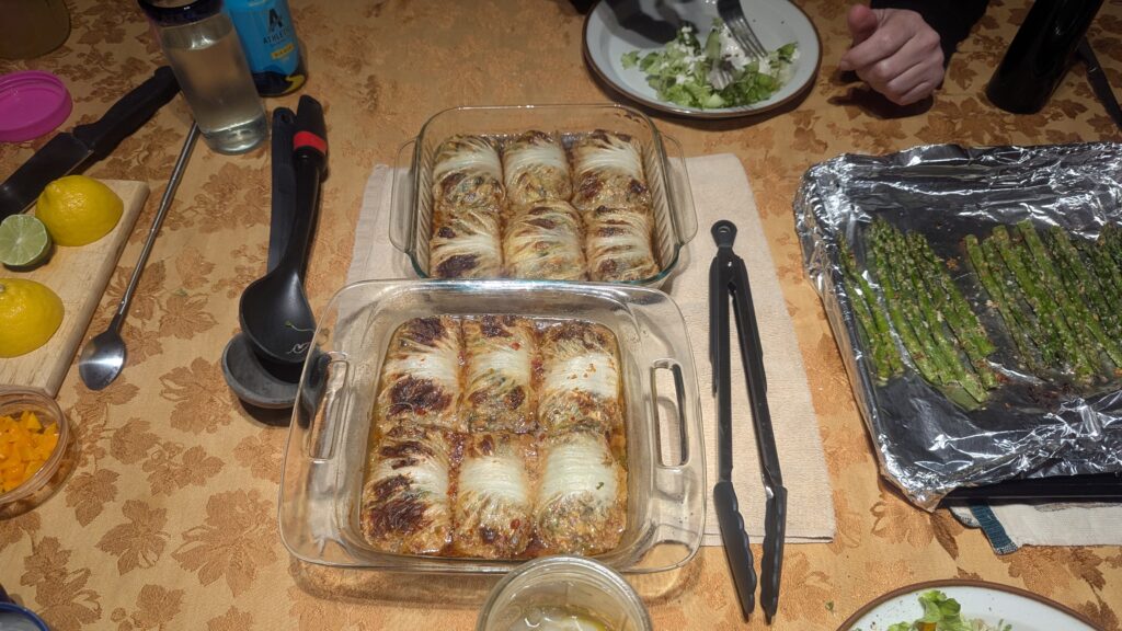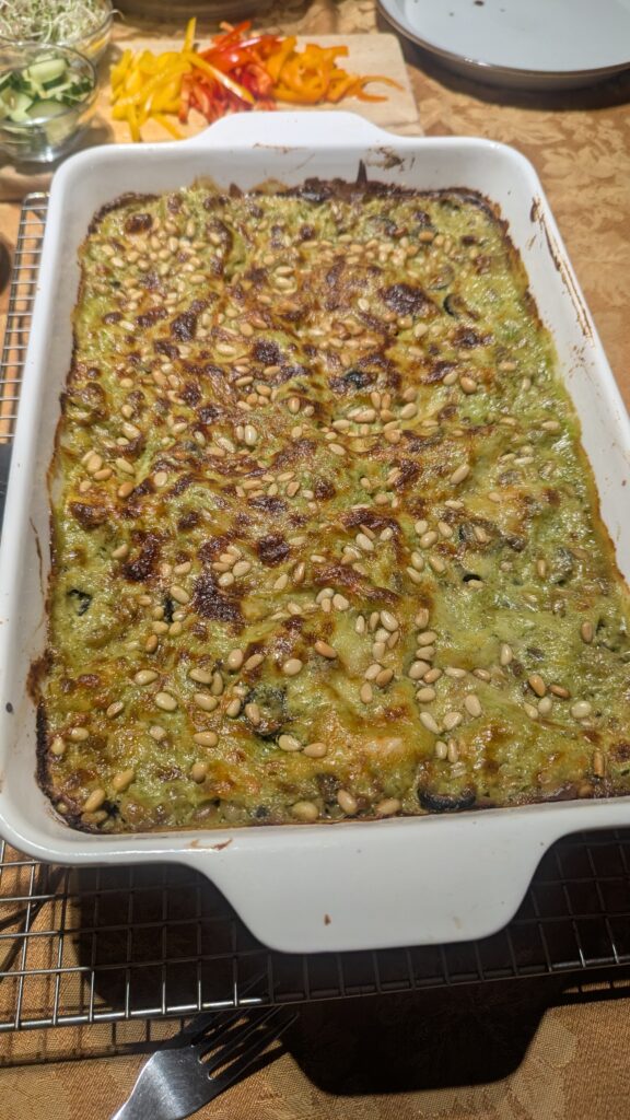 Pesto lasagna (homemade noodles and bascially the Cook’s Country Season 18 “Greens for Dinner). It has a very green sauce. Also added 20 oz of nightshade free sausage (link here) and sliced olives. https://www.pbs.org/video/greens-for-dinner-FxOiPe