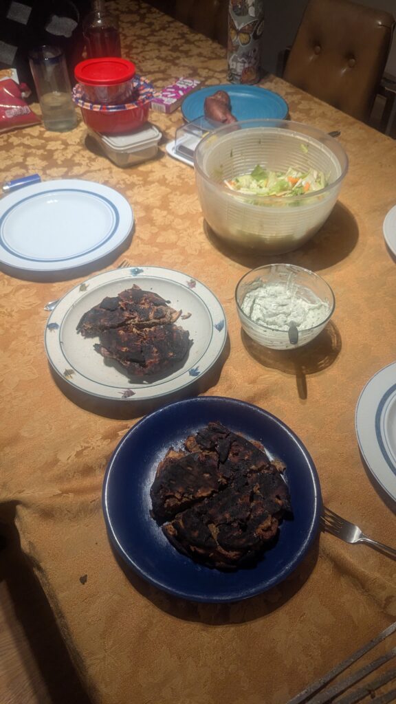 Grilled Lamb-Stuffed Pita (Cook’s Illustrated 2017ANNUAL). Very good burger mix and sauce, but what were they thinking? I read this recipe and could not believe it, but tried because I thought they must have tested it. The bread got completely burnt after only like 2-3 minutes per side (as any reasonable person would expect) and of course they mean pita pocket bread instead of just any pita flatbread. It is really hard to cut a normal pita bread in half that way.