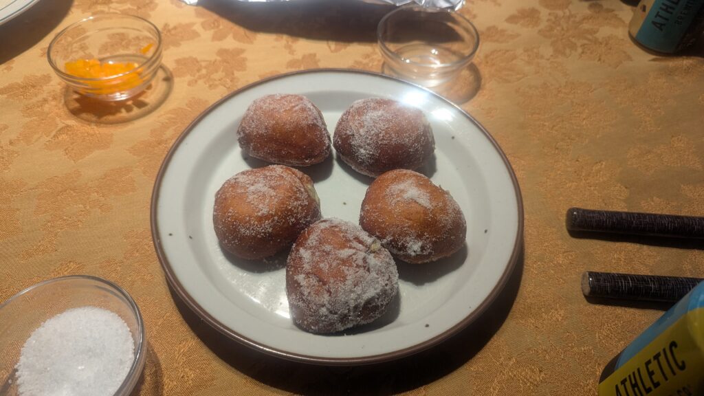 Malasadas (https://www.thespruceeats.com/hawaiian-malasada-4773495) with passion fruit pastry cream filling (Just puréed frozen passion fruit chunks mixed in with the pastry cream recipe from America’s Test Kitchen Family Cookbook).
