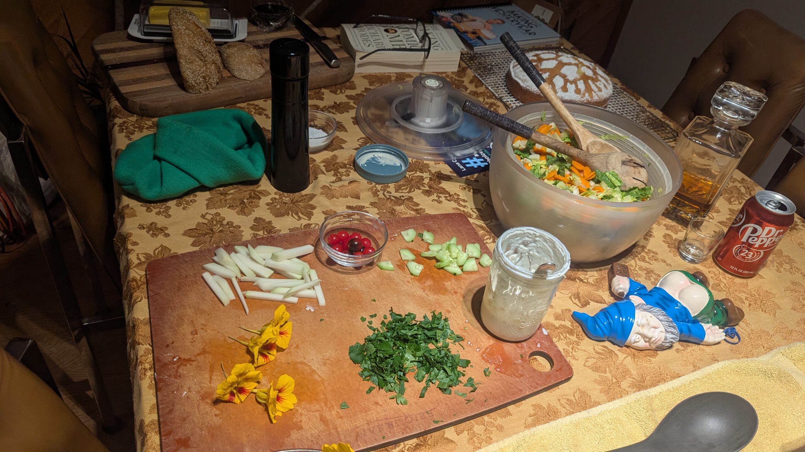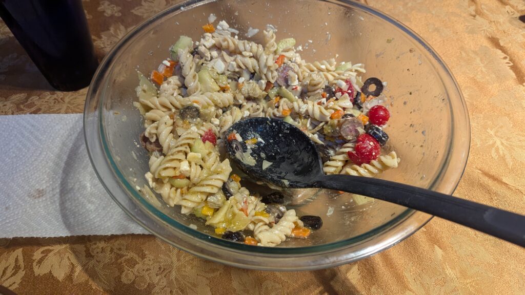 Greek Pasta Salad (from this site, but added marinated artichoke hearts).