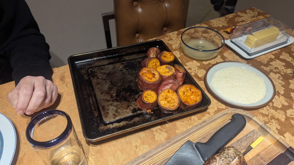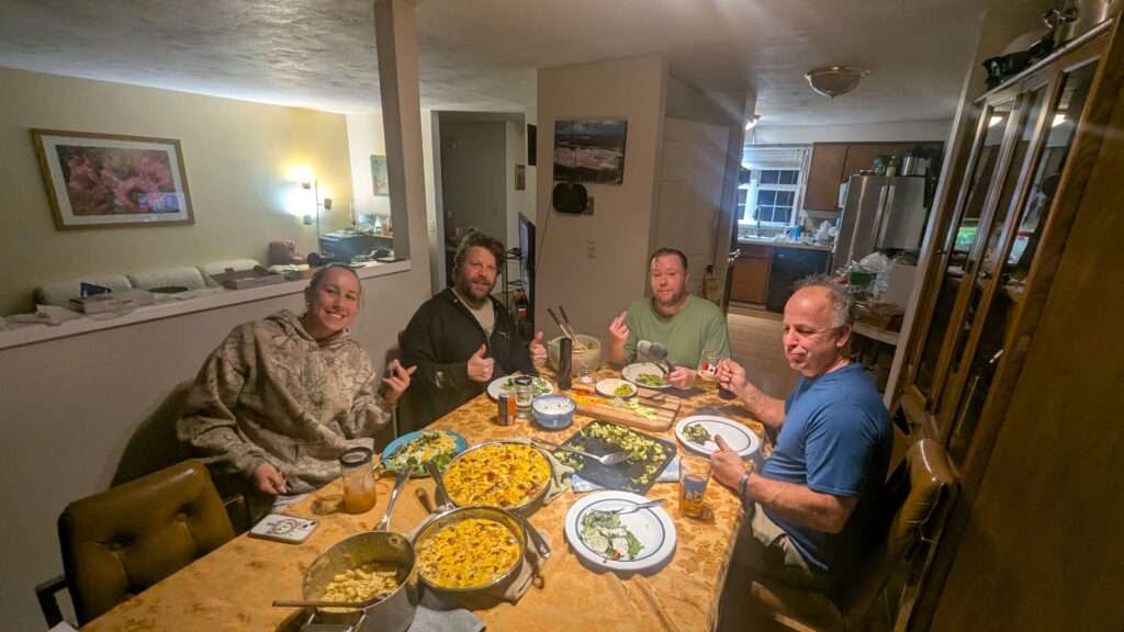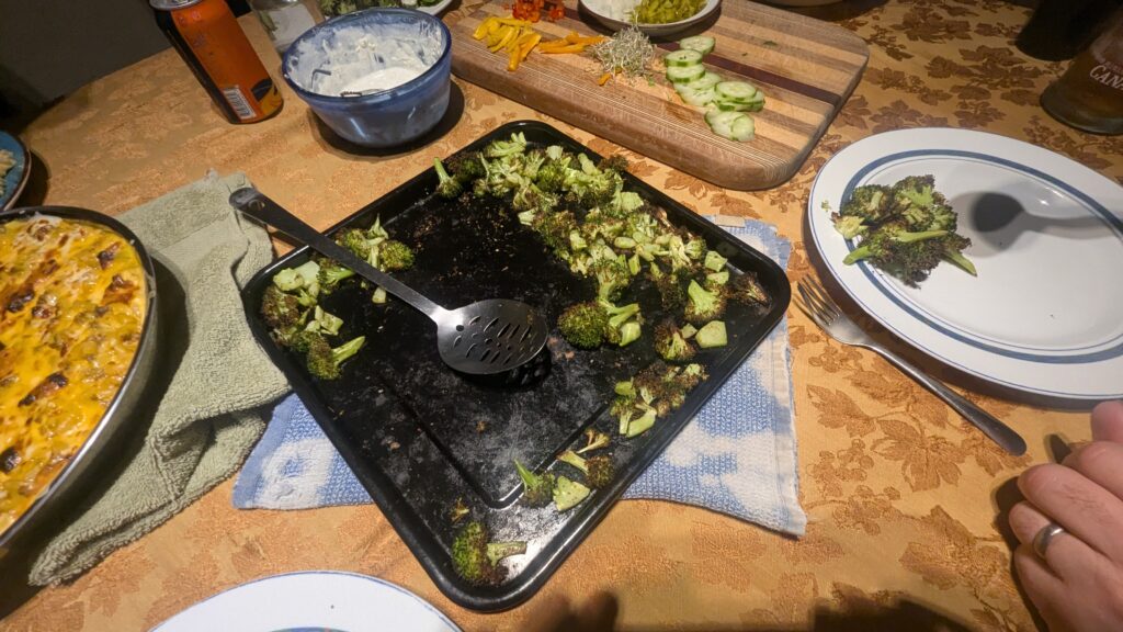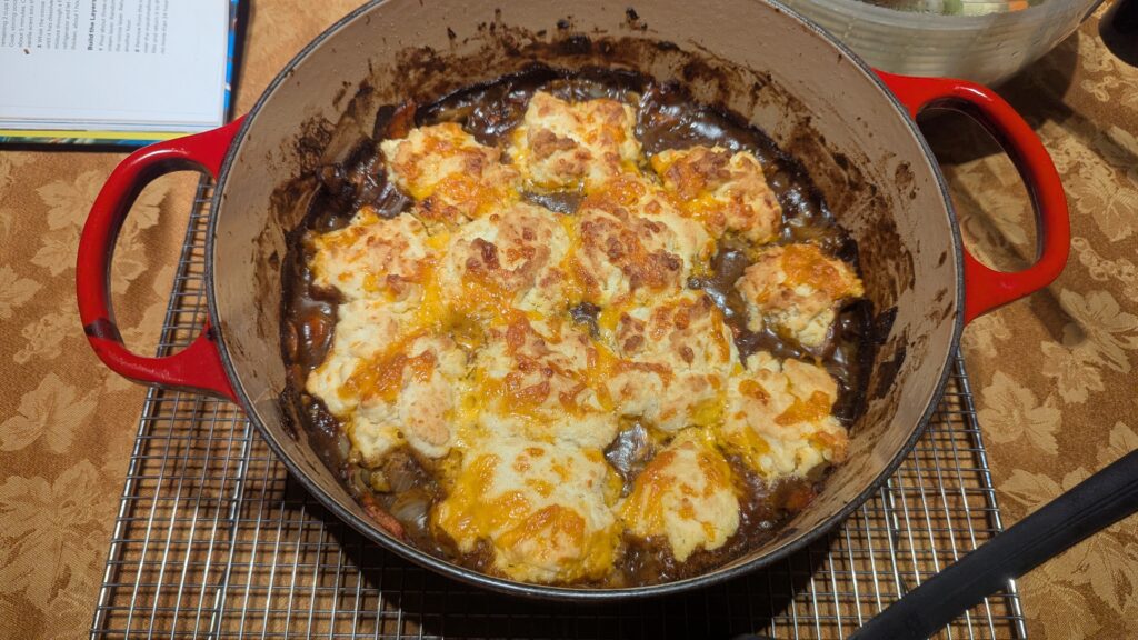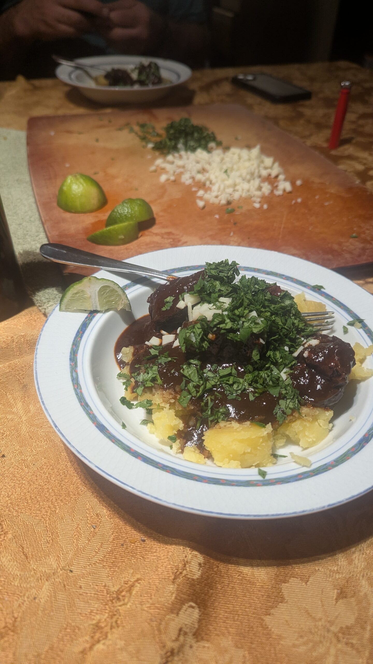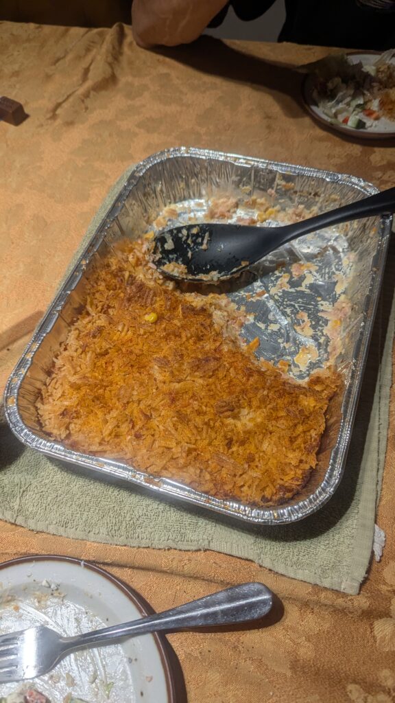 King Ranch Casserole made with homemade corn tortillas with twice the jalepeno (Cook’s Country, April/May 2007)