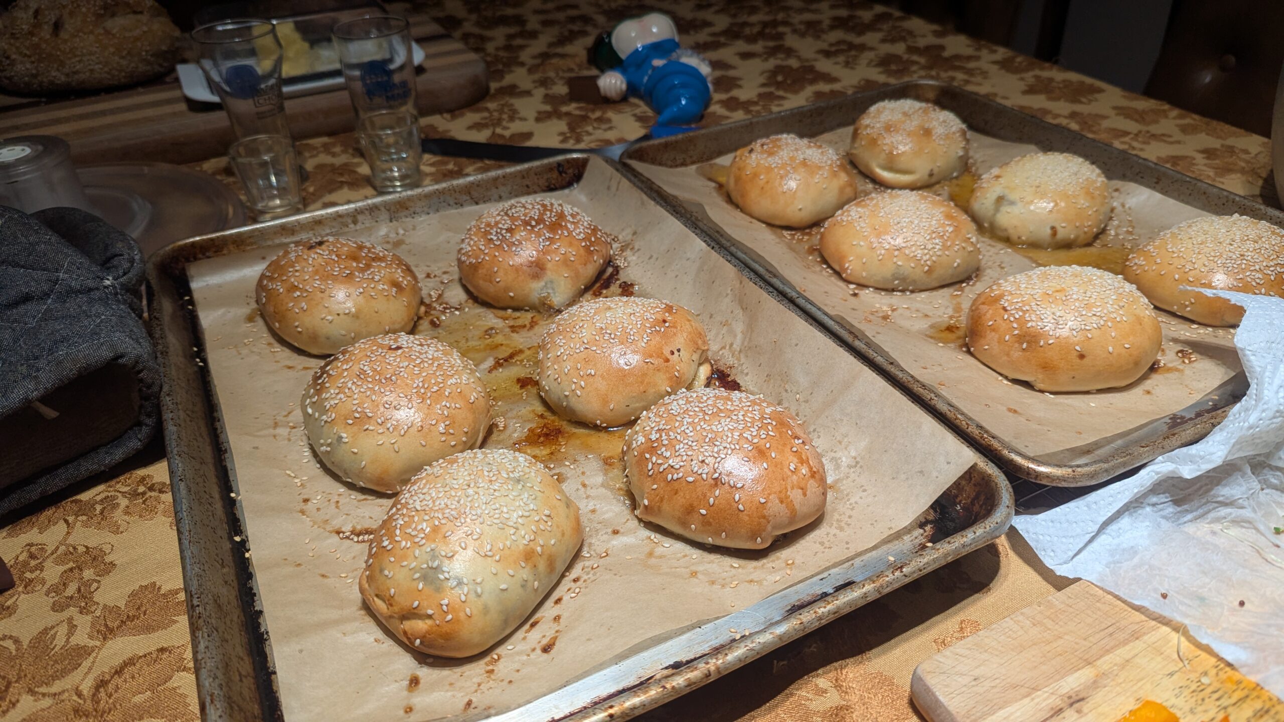 Bierocks (Cook’s Country Jun/July 2012) with ghost pepper and regular homemade mayos.
