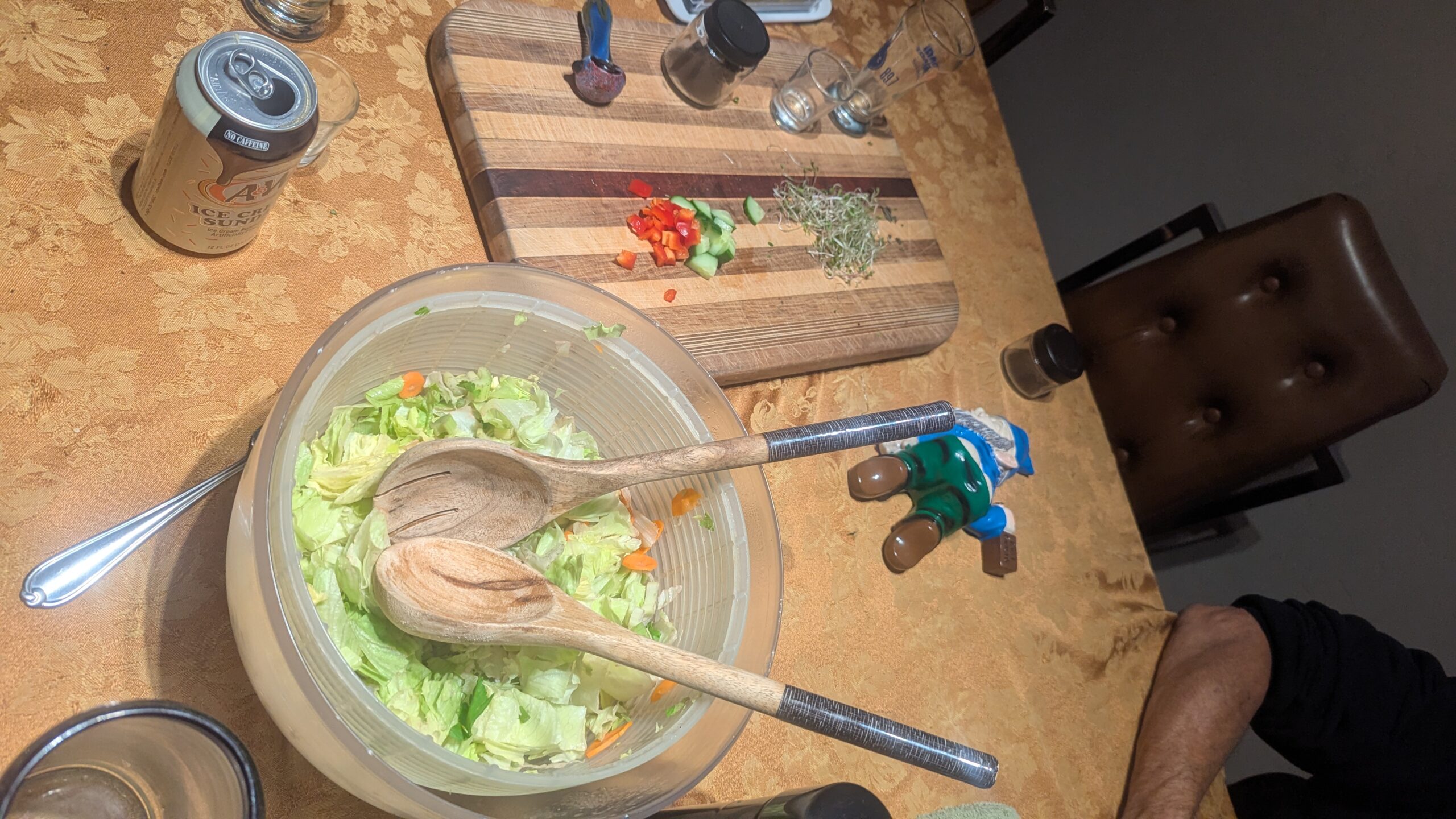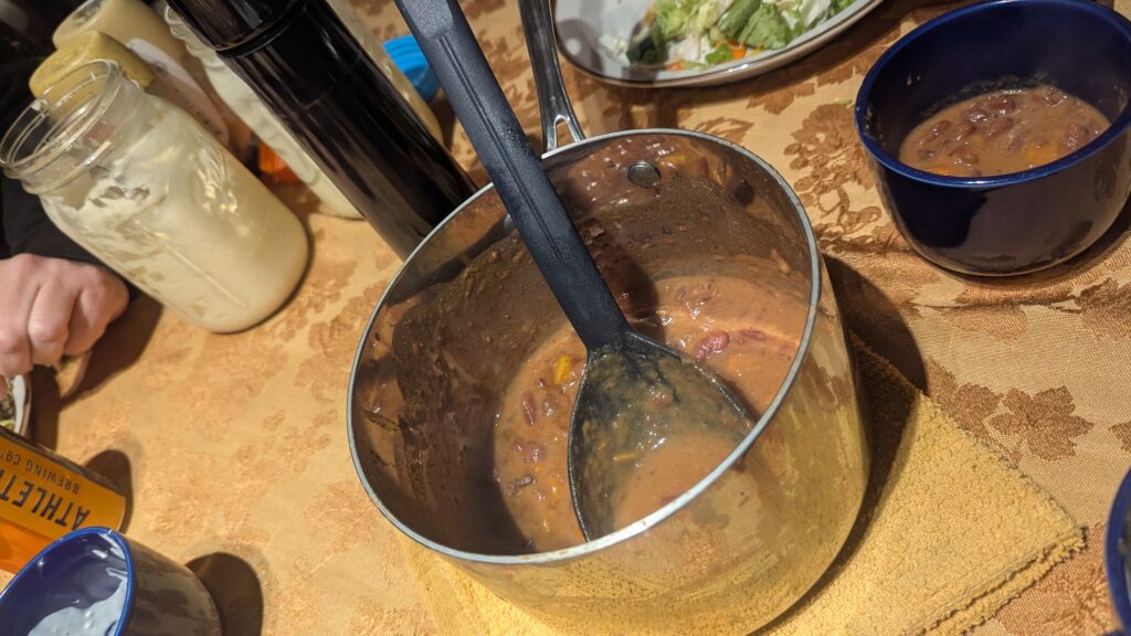Super beans (my standard recipe, concentrated homemade stock, kidney beans, bacon, onion, carrot, celery, garlic, ghost peppers)