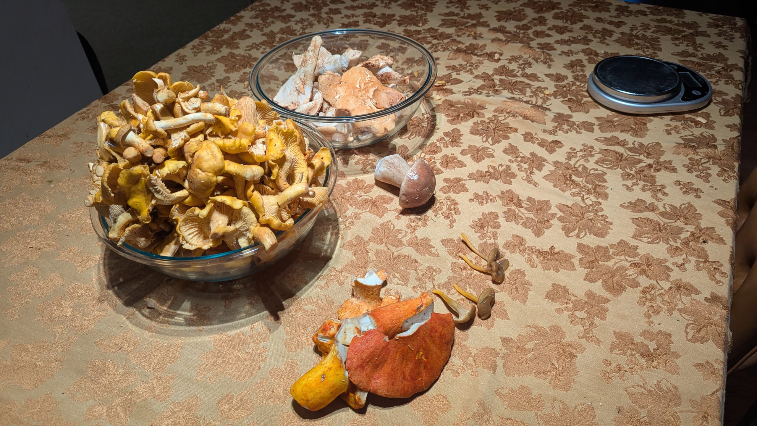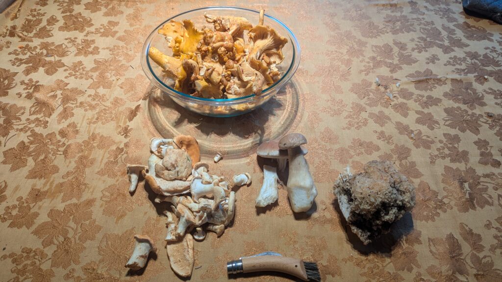 Wild mushroom soup (bacon, carrots, onion, celery, garlic, lobster mushroom, hedgehogs, and chaterelles)